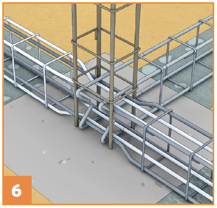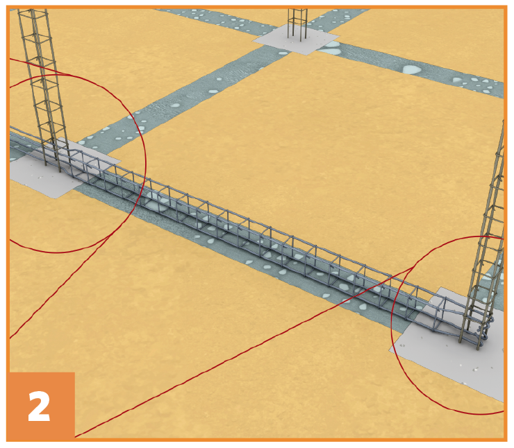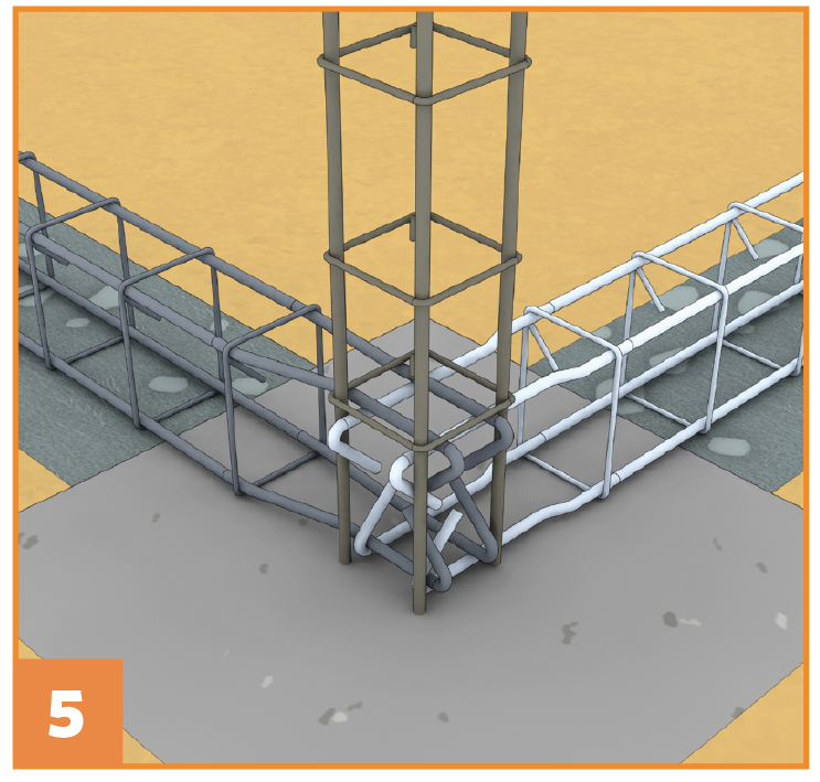 Cuando exista un encuentro de cadenas en el mismo eje se deberá manejar el traslape adecuado de varillas para manejar la continuidad y la cadena perpendicular se deberá trabajar como en el paso anterior.