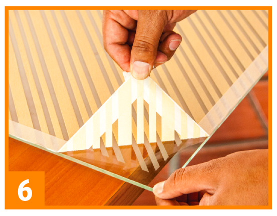 Paso 4: Asegúrate que el stencil esté bien colocado y asegurado con masking. También puedes hacer diseños o tramas solo con la cinta masking.