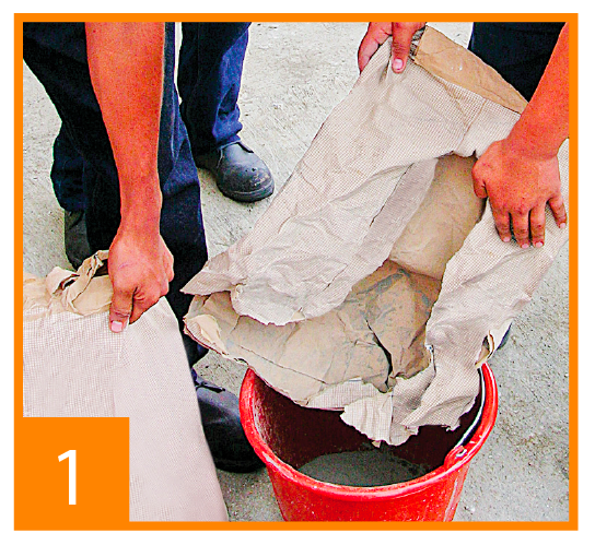 Paso 1: Coloque el mortero en el balde para mezcla y agregue agua.