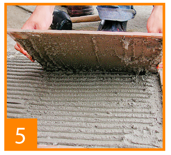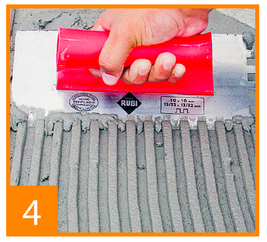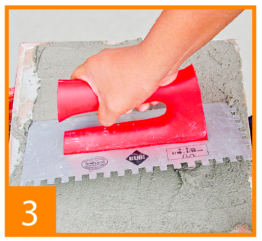 Paso 3: Use el peine 10x10mm y coloque el mortero en la placa de porcelanato.