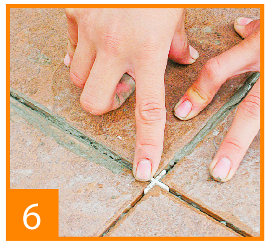 Paso 6: Ubique las crucetas en los 4 vértices de las placas, permitirán amor- tiguar el movimiento de las placas y servirán de guías para una instala- ción profesional.