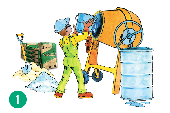 PASO 2 : Colocar el cemento y el resto de agua de mezclado.