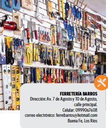 “El 6 de agosto de 1985 mi padre, el Sr. Wilson Barros Rivera, creó La Ferretería Barros acá en Buena Fe – provincia de Los Ríos. La experiencia que obtuvo al trabajar 18 años en la Ferretería Marcelo Jiménez, lo ayudó de mucho, los conocimientos adquiridos los puso en práctica al momento de crear su propio negocio ferretero, el cual desde sus inicios tuvo por meta aportar al crecimiento de la localidad, ofreciendo a todos sus clientes siempre los mejores productos y una asesoría eficaz”, indica Barros.