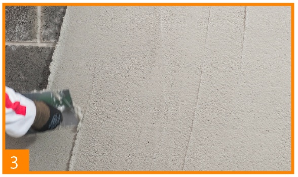 Paso 3: Humedezca ligeramente la superficie que va a enlucir. Coloque Enlumax® Capa Gruesa con llana metálica o vailejo en un espesor entre 5 mm y 20 mm. Puede colocar varias capas de hasta 10 mm cada una hasta obtener el espesor deseado, cuando la capa anterior esté firme.