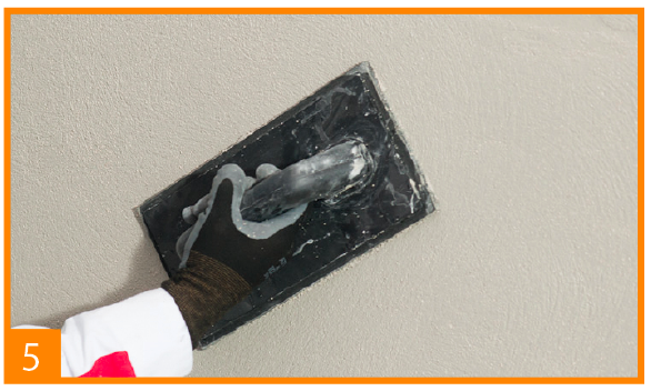 Paso 5: Una vez que esté ligeramente seco al tacto, dé acabado final con llana de goma o plancha de madera, cubriendo todos los vacíos.
