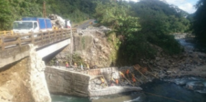 Por esta razón, el Ministerio de Transporte y Obras inició los trabajos de construcción del muro del estribo derecho del puente, que incluye encauzamiento del río para realizar los trabajos de hormigonado del muro, reforzamiento y reconstrucción del estribo del margen derecho, colocación de señalética preventiva e informativa, con una inversión de más de USD 450 000.