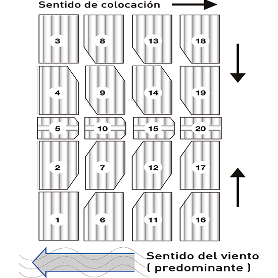 Recomendación: Nunca se apoye directamente sobre las tejas, camine siempre sobre un tablón firme, apoyado como mínimo en tres correas y el ancho del tablón debe quedar apoyado sobre dos ondas de la teja como mínimo. Además, tenga en cuenta esta información para una correcta instalación.