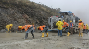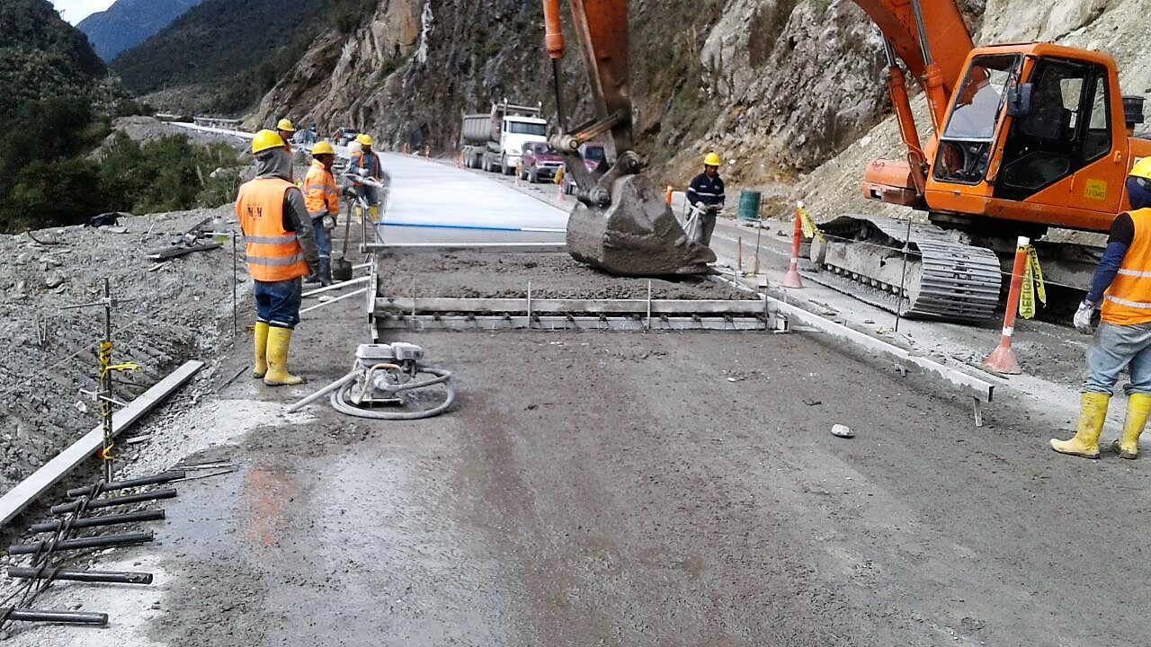 El Ministerio de Transporte y Obras Públicas ejecuta trabajos en los 60,77km de la vía Gualaceo – Limón, y en los próximos días culminará la colocación de pavimento rígido, en los accesos a los puentes.